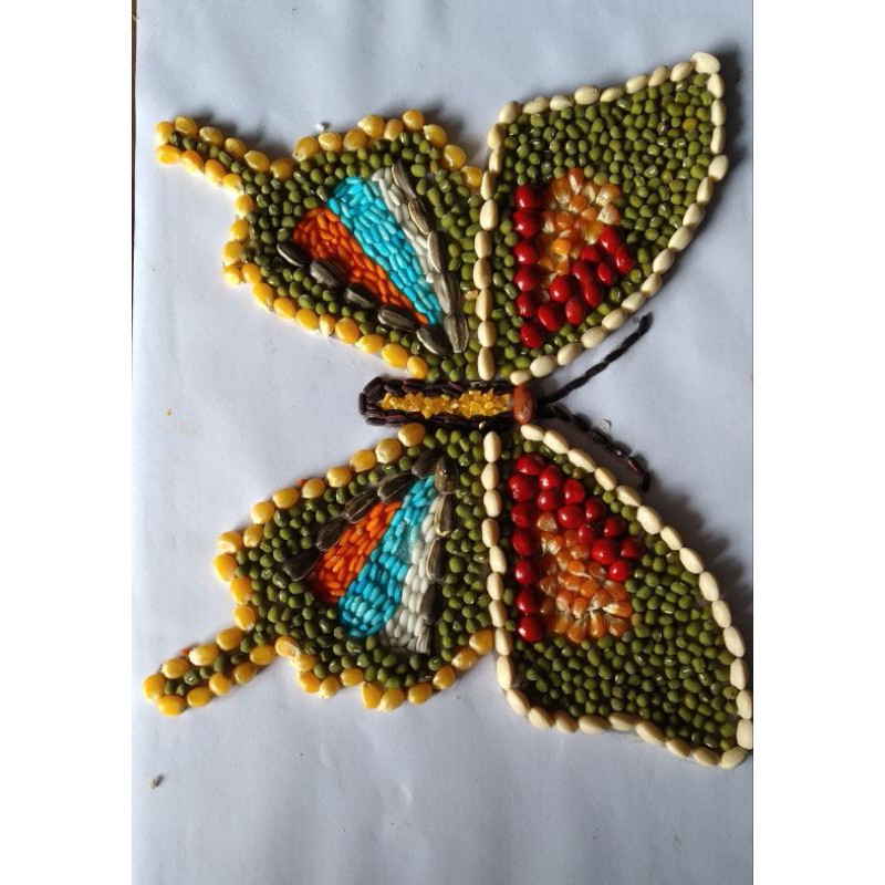 Gambar kolase biji bijian bentuk kupu kupu menggambar kupu kupu biji bijian kolase .
